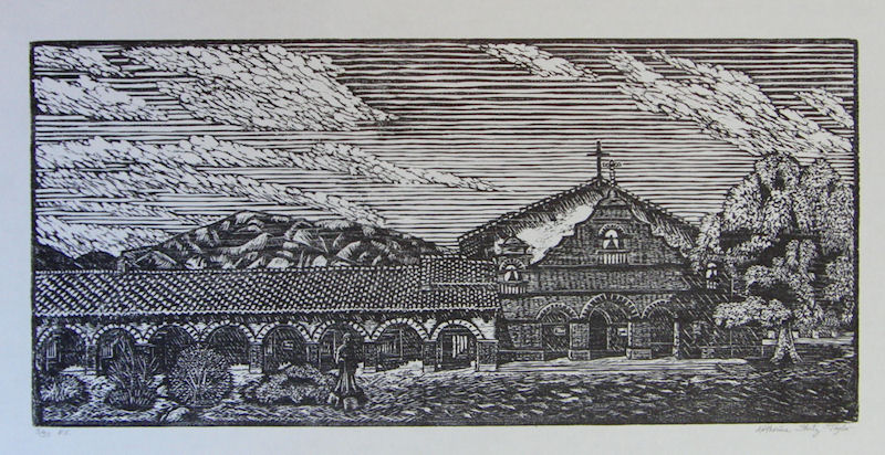 Off the beaten path and relatively undiscovered - Mission San Antonio is just outside the gates of Fort Hunter Liggett in central Monterey County. This one of a kind hand pulled woodblock print takes you back to the glory days of the mission era.