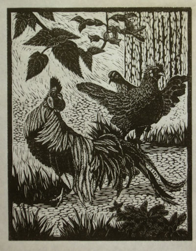 This image of my proud Phoenix Bantam Rooster was done for the San Juan Bautista Chicken Festival in 2009.